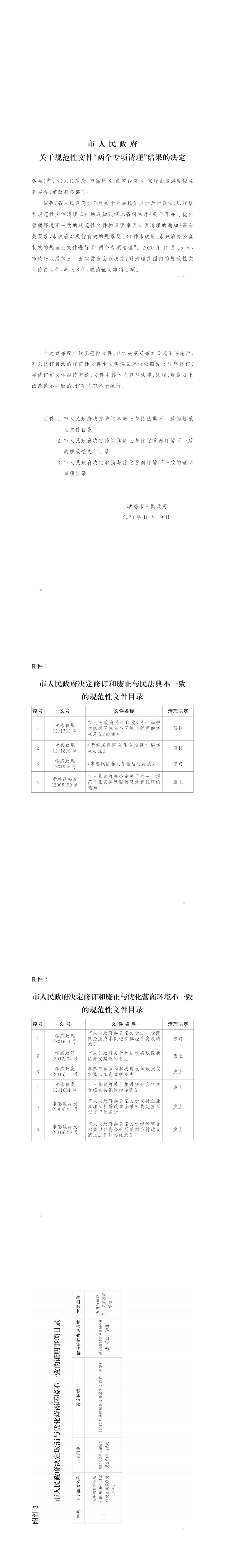 孝感市人民政府关于规范性文件“两个专项清理”结果的决定