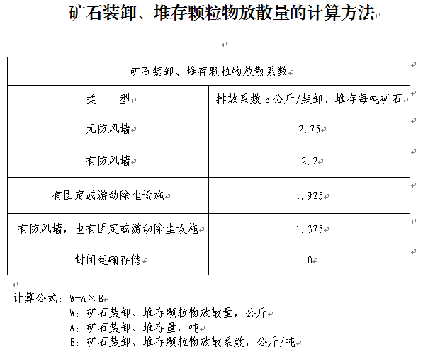 关于煤炭装卸、堆存煤粉尘排放量的确定问题,对于具备监测技术与条件的,按实测数据计算排放量;对不具备监测技术与条件的,可参照以下排污系数确定排放量