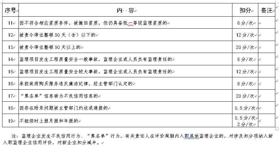 (三)不良信用信息和“黑名单”信息由市、县住房城乡建设主管部门或监理企业录入。与市内工程项目有关的不良信用信息、“黑名单”信息由作出认定的市、县级住房城乡建设主管部门录入。市、县住建部门应当在作出行政处罚或获取不良信用信息和“黑名单”信息后7个工作日内完成录入。监理企业也可主动填报不良信用信息,监理企业主动填报不良信用信息的,计分时按标准的80%进行扣分。