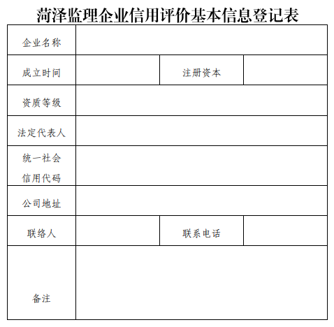 附件:1.菏泽监理企业信用评价基本信息登记表
